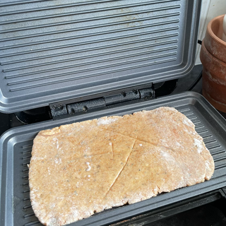 I rolled it flat ( I was making mine in my @tower grill so I made it that shape ) .. spray either side of grill and toast , I turned over half way through !! )