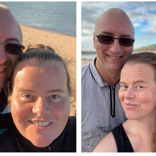 This is a double Selfie of us , looking and feeling so much healthier and happier physically & mentally .