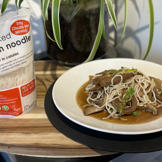 You know I hate waste and quite often make a fridge meal up , (we’re I use all leftovers that I need to use up .. ) .. well these noodles are perfect for that!.. I chopped up some leftover beef ( 100g ) and asparagus tips and mushrooms and dry fried with chopped garlic and ginger with five spice and soy sauce .. then added some chicken stock ... I got 2 portions out of it a 200 calories each ( just make sure you weigh yours for your calorie content )