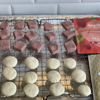 So my @exantediet Rasberry & white chocolate vegan ones were 48 calories & 2.8g carbs each