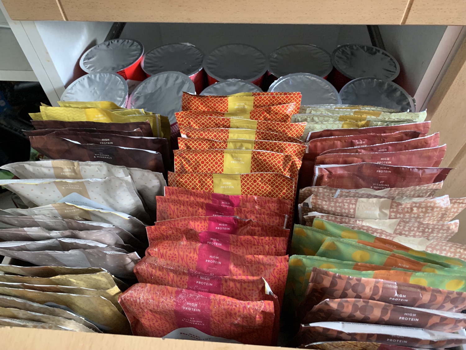 I have 3 meal replacements and an extra 200 kcal meal ( either as a meal or I pimp up my packs !)