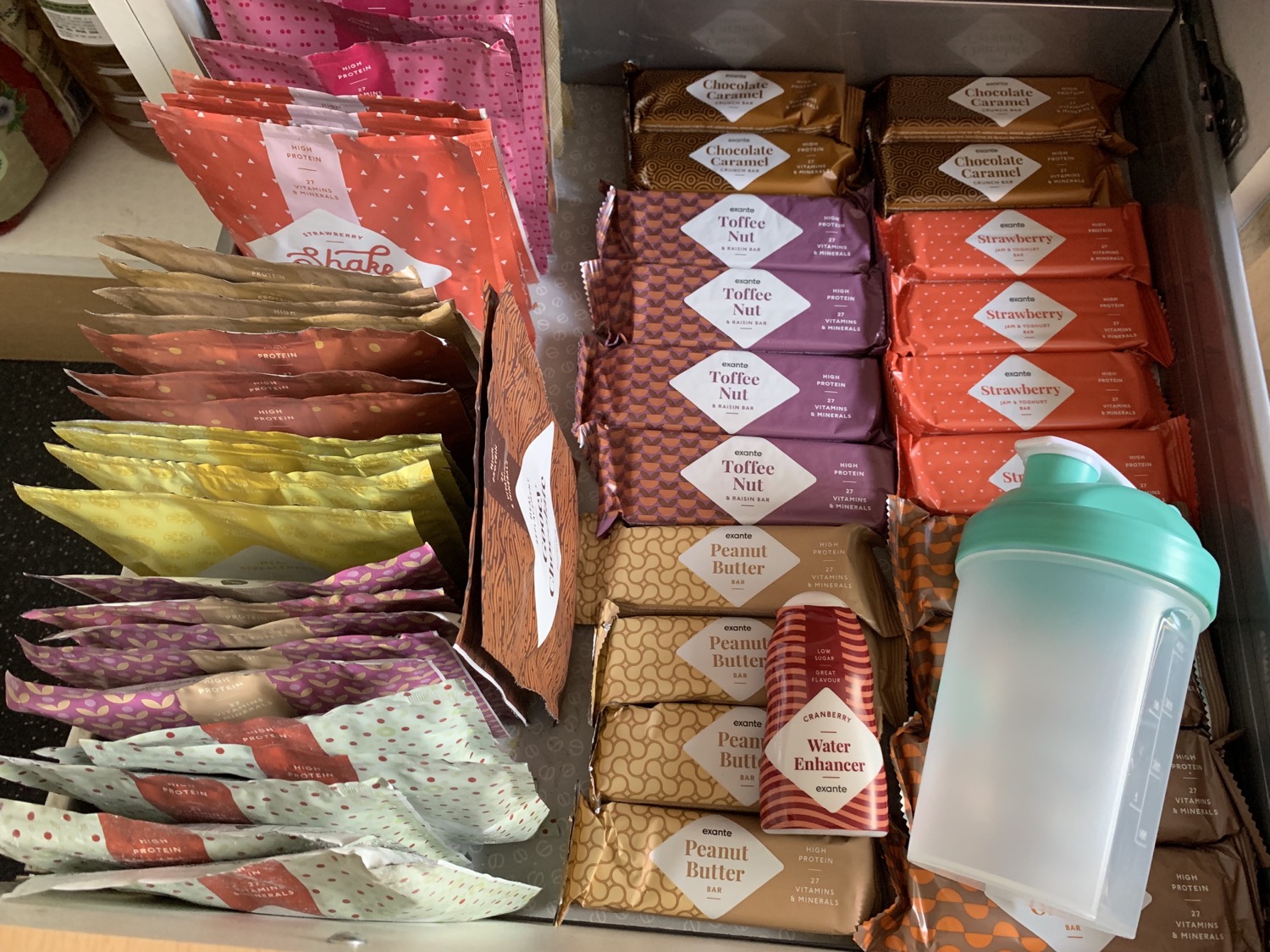 I found out early on that it suits me not to have my first product of the day until 12pm ish ( i tended to get hungry later in day so having it at these times makes sure I don’t pick and gives me more food to play with in the afternoon )